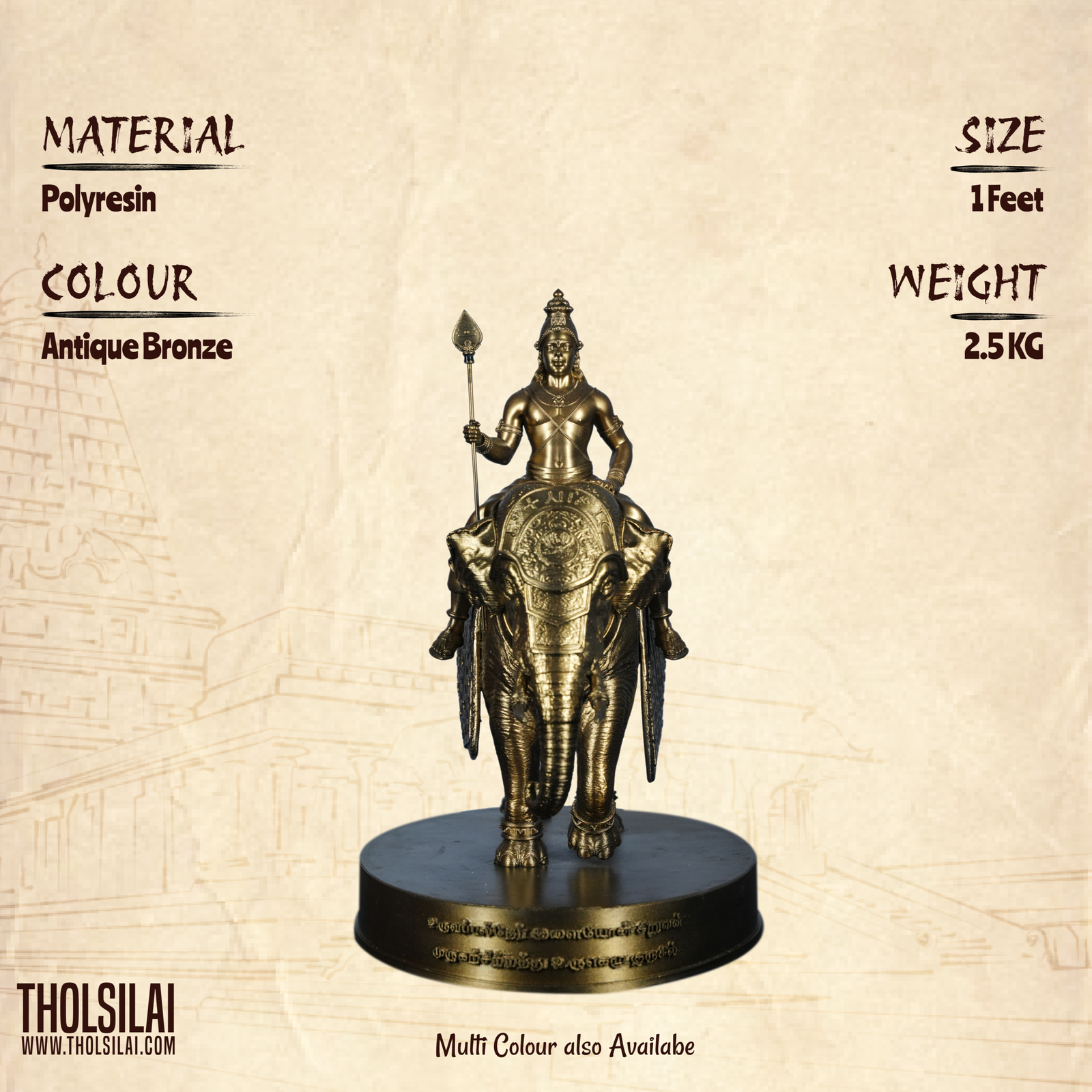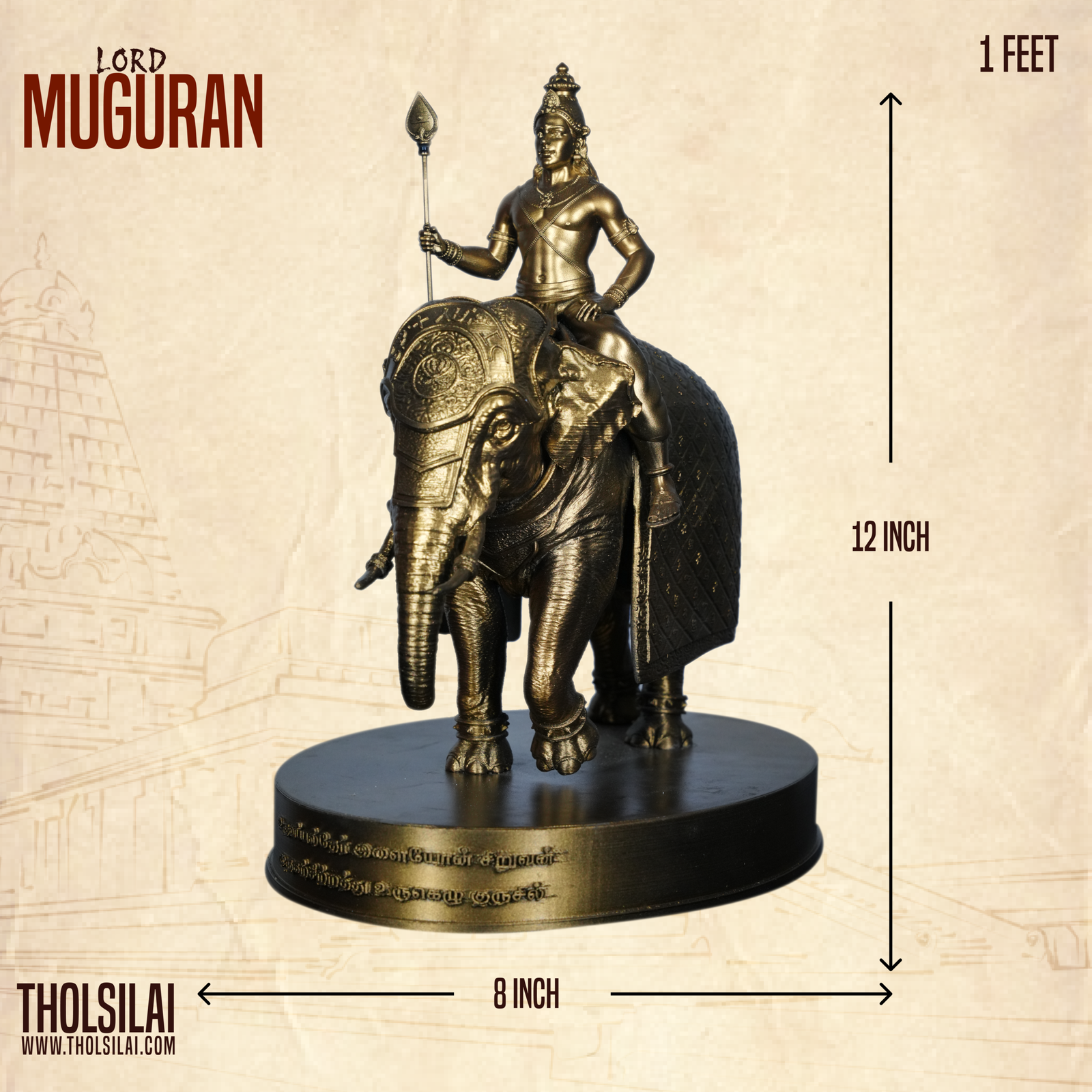 • The cloth on the elephant has the word Murugan inscribed in Chola-era Tamil script.